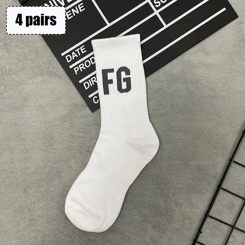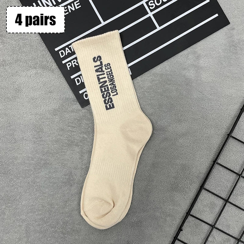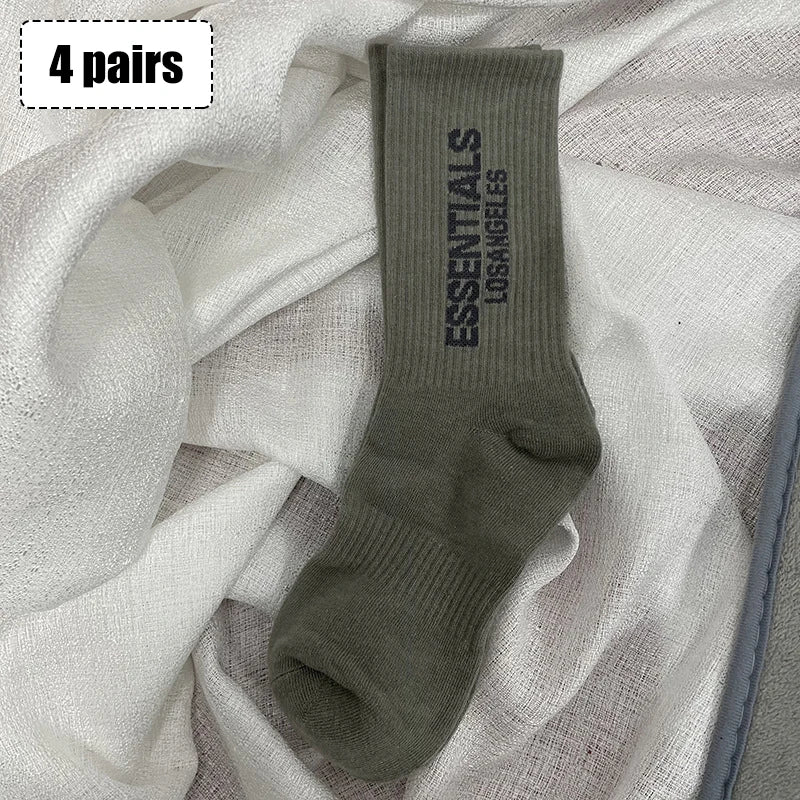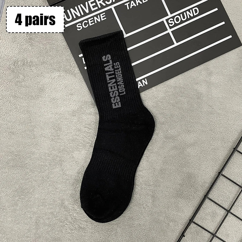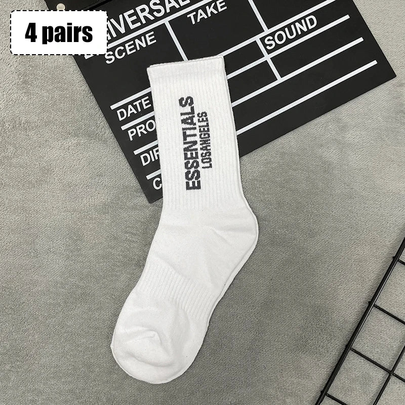 4 pairs Essentials Socks Men Sports Breathable Socks Long Tube Cotton Socks Skateboard Casual Men and Women Couples Fashion Sock